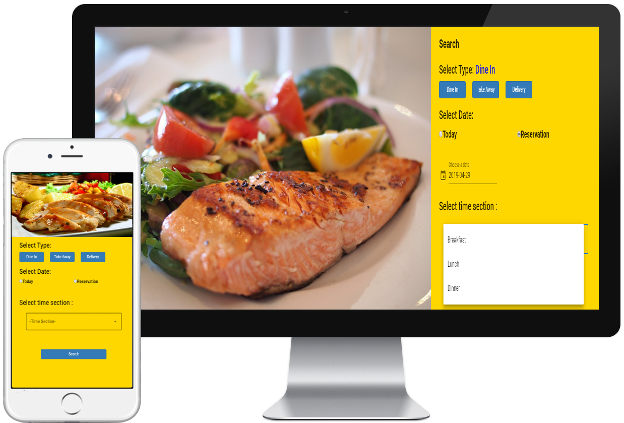 Customers can select set meals, dates, and times. Shop owners can set off days.